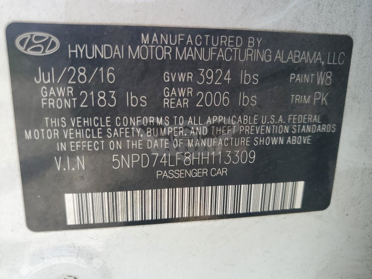 • VIN: 5NPD74LF8HH113309