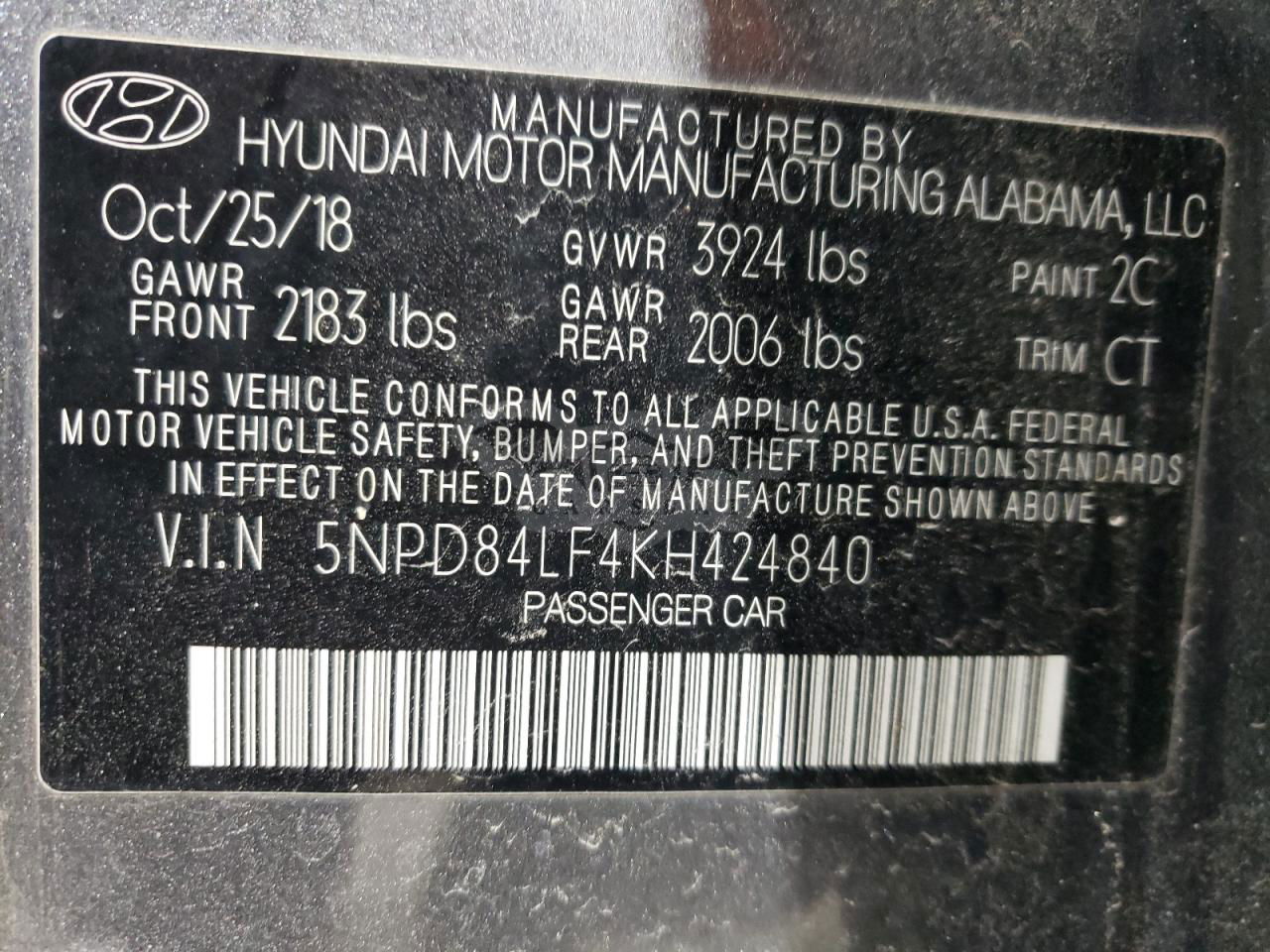 • VIN: 5NPD84LF4KH424840