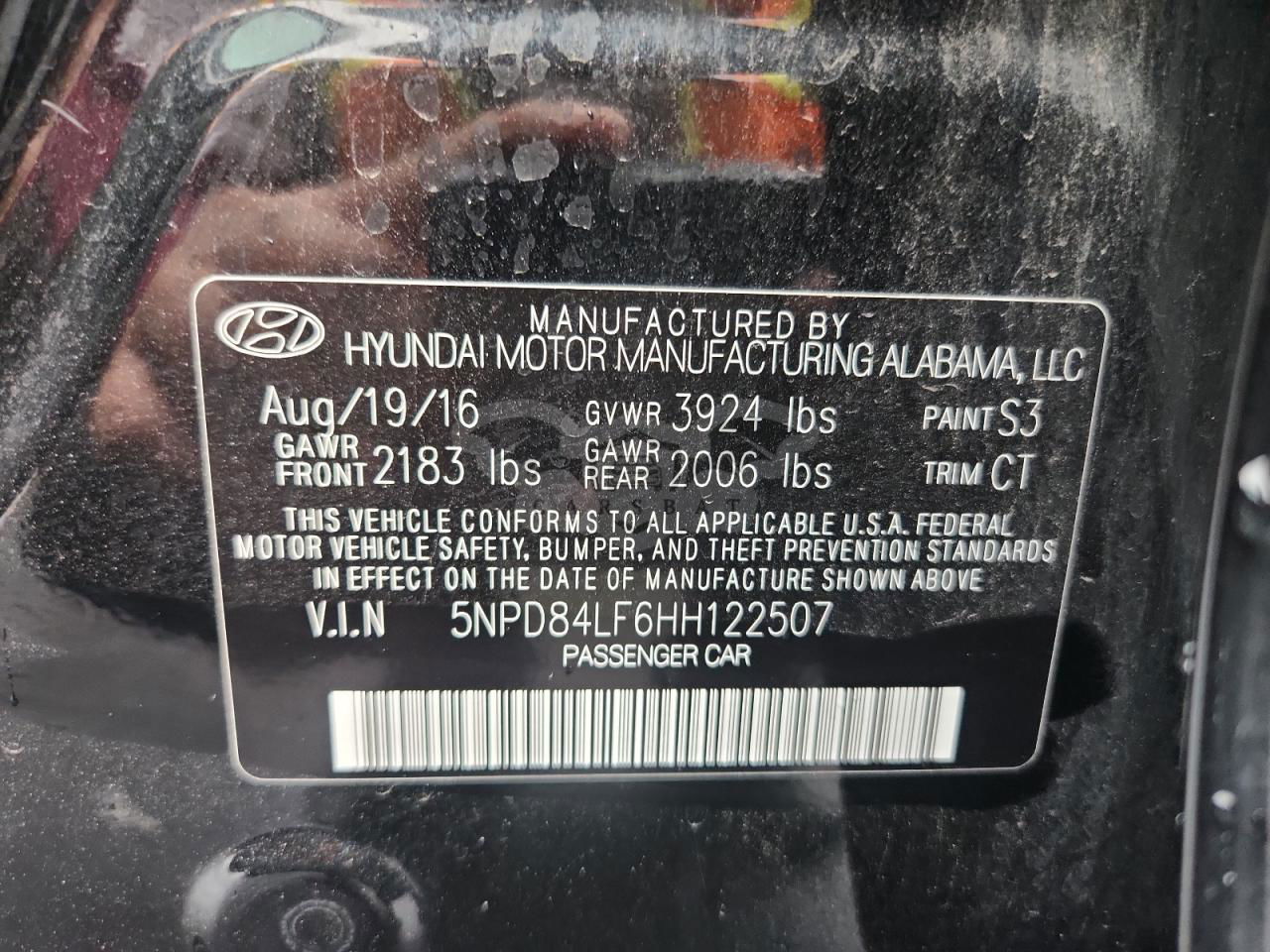 • VIN: 5NPD84LF6HH122507