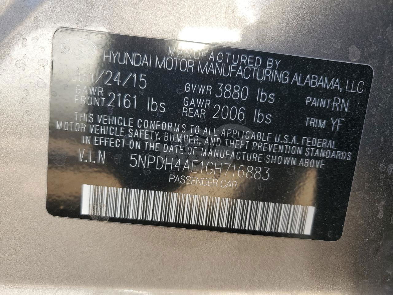 • VIN: 5NPDH4AE1GH716883