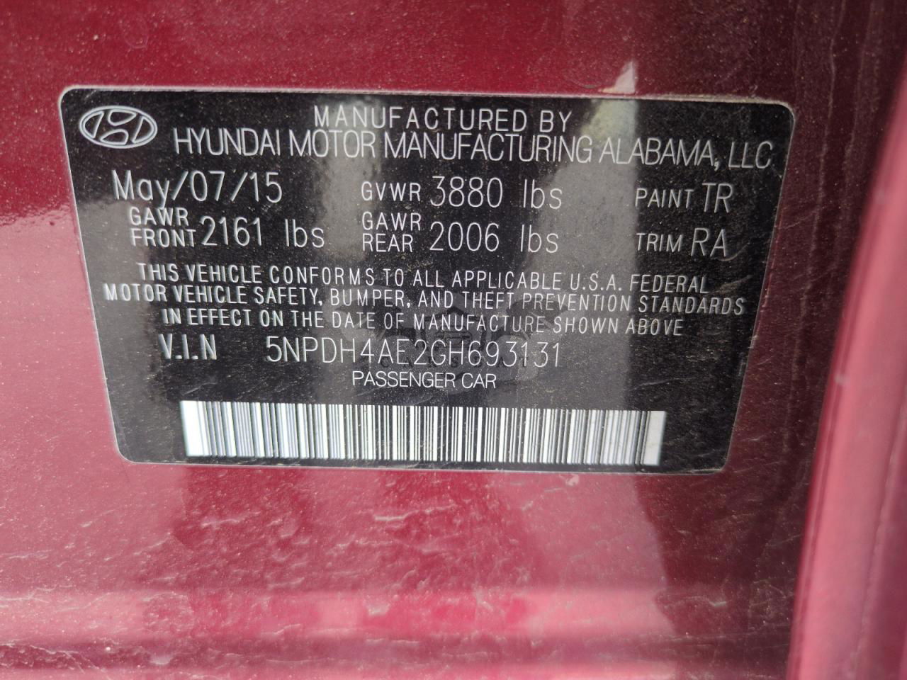 • VIN: 5NPDH4AE2GH693131