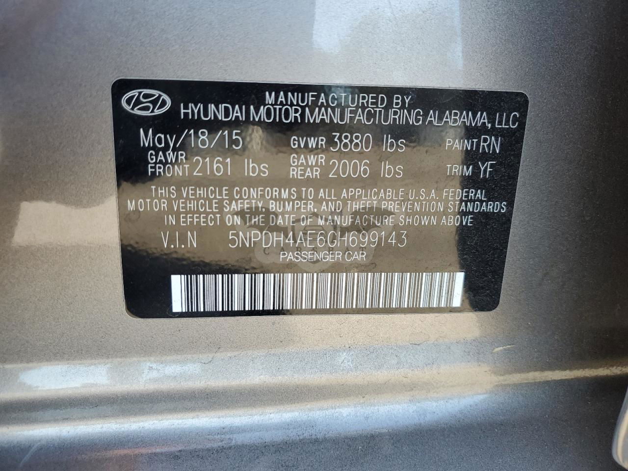 • VIN: 5NPDH4AE6GH699143