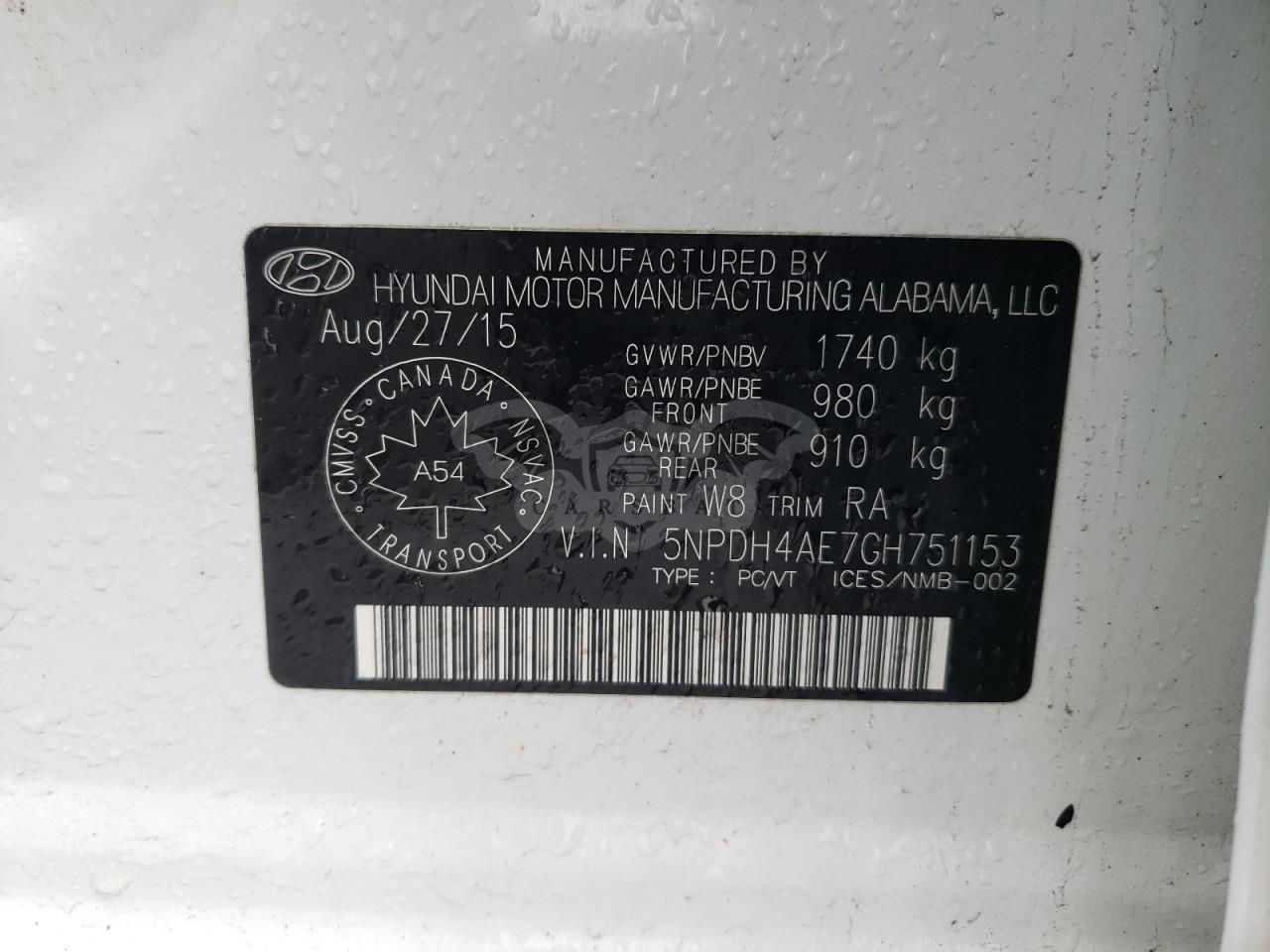 • VIN: 5NPDH4AE7GH751153