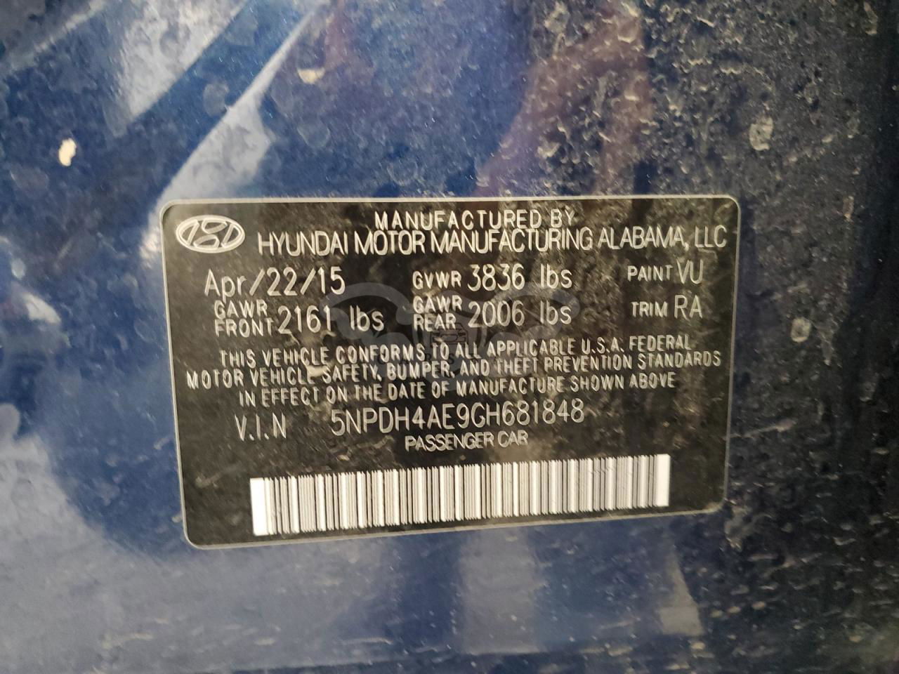 • VIN: 5NPDH4AE9GH681848