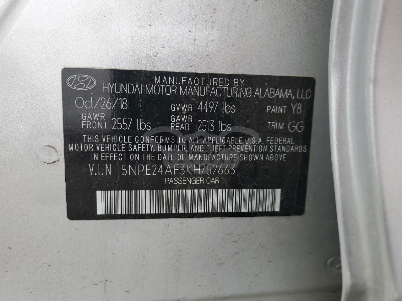 • VIN: 5NPE24AF3KH752663