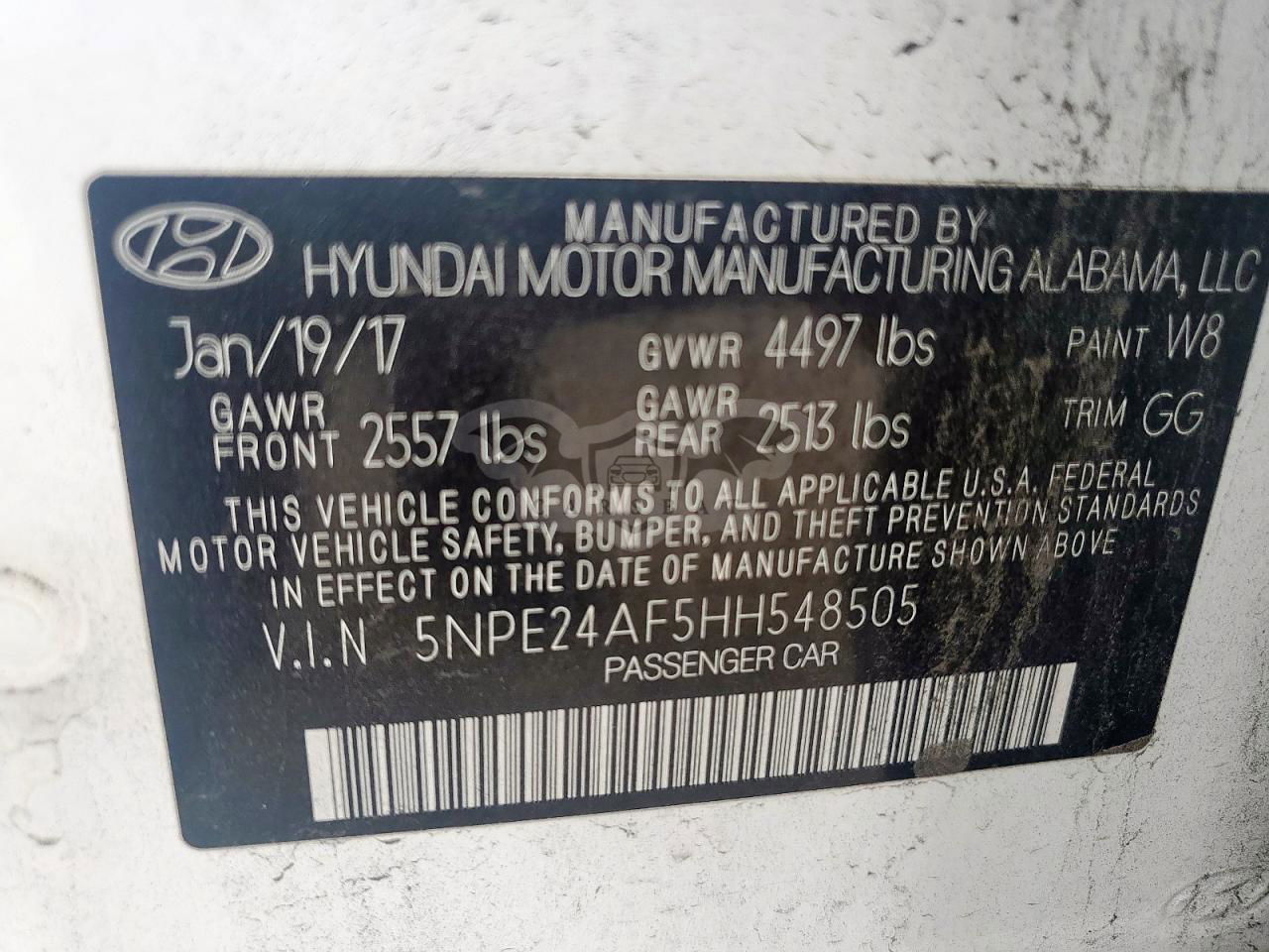 • VIN: 5NPE24AF5HH548505