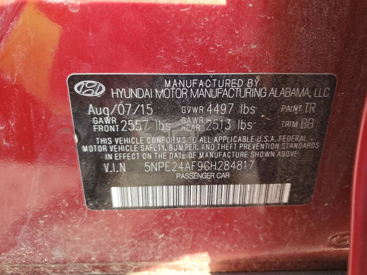 • VIN: 5NPE24AF9GH284817
