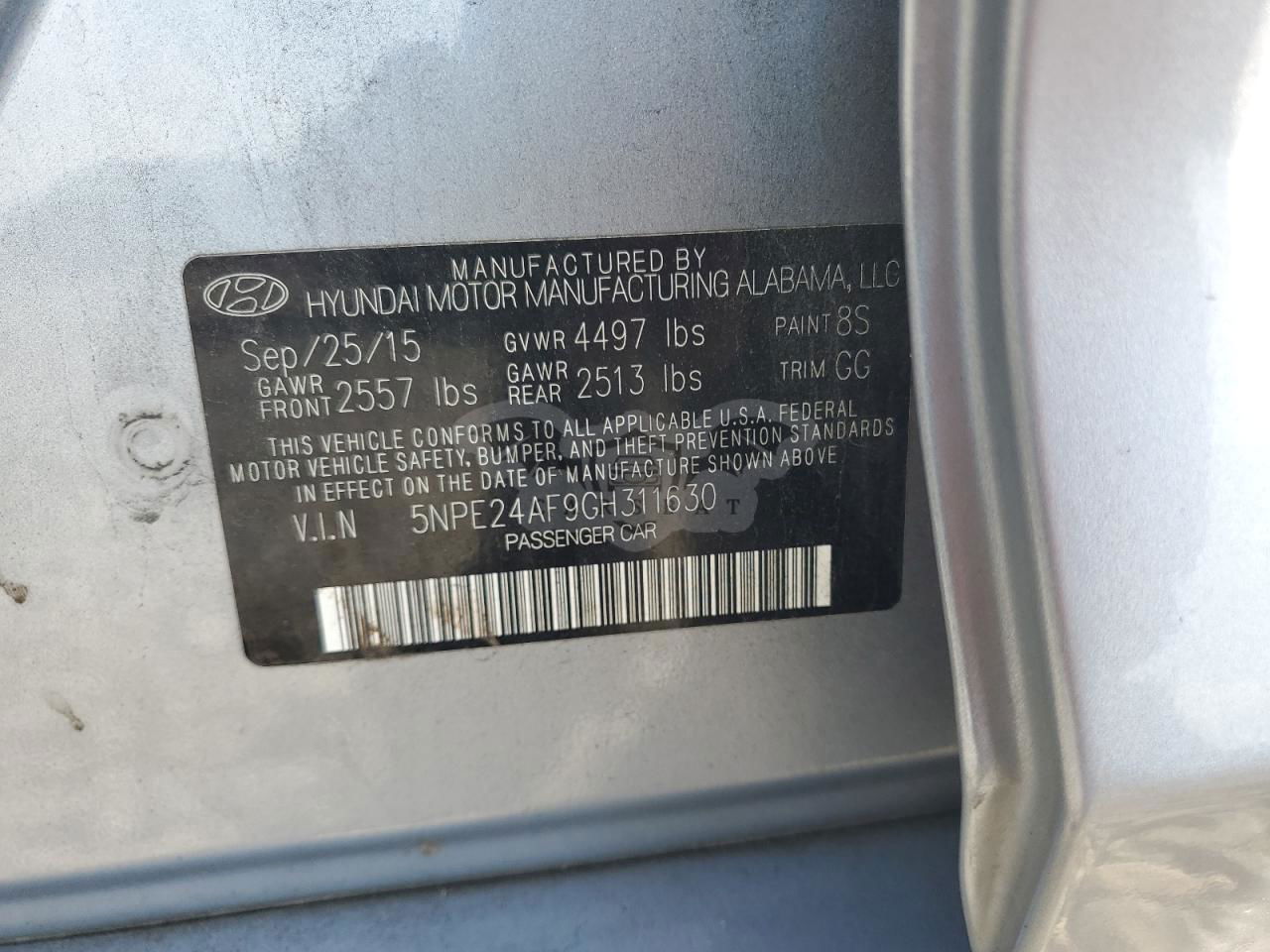 • VIN: 5NPE24AF9GH311630