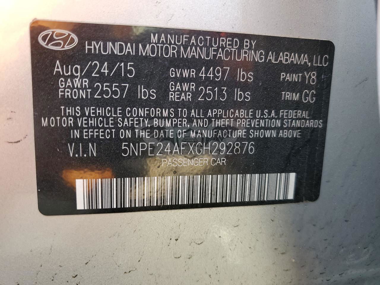 • VIN: 5NPE24AFXGH292876