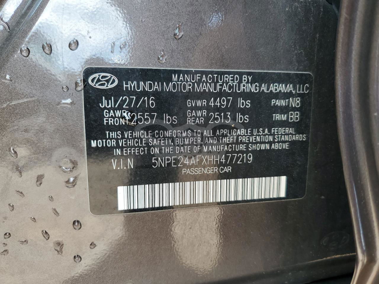• VIN: 5NPE24AFXHH477219