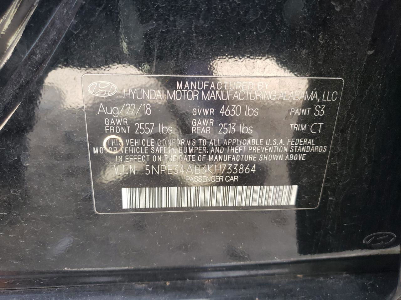 • VIN: 5NPE34AB3KH733864