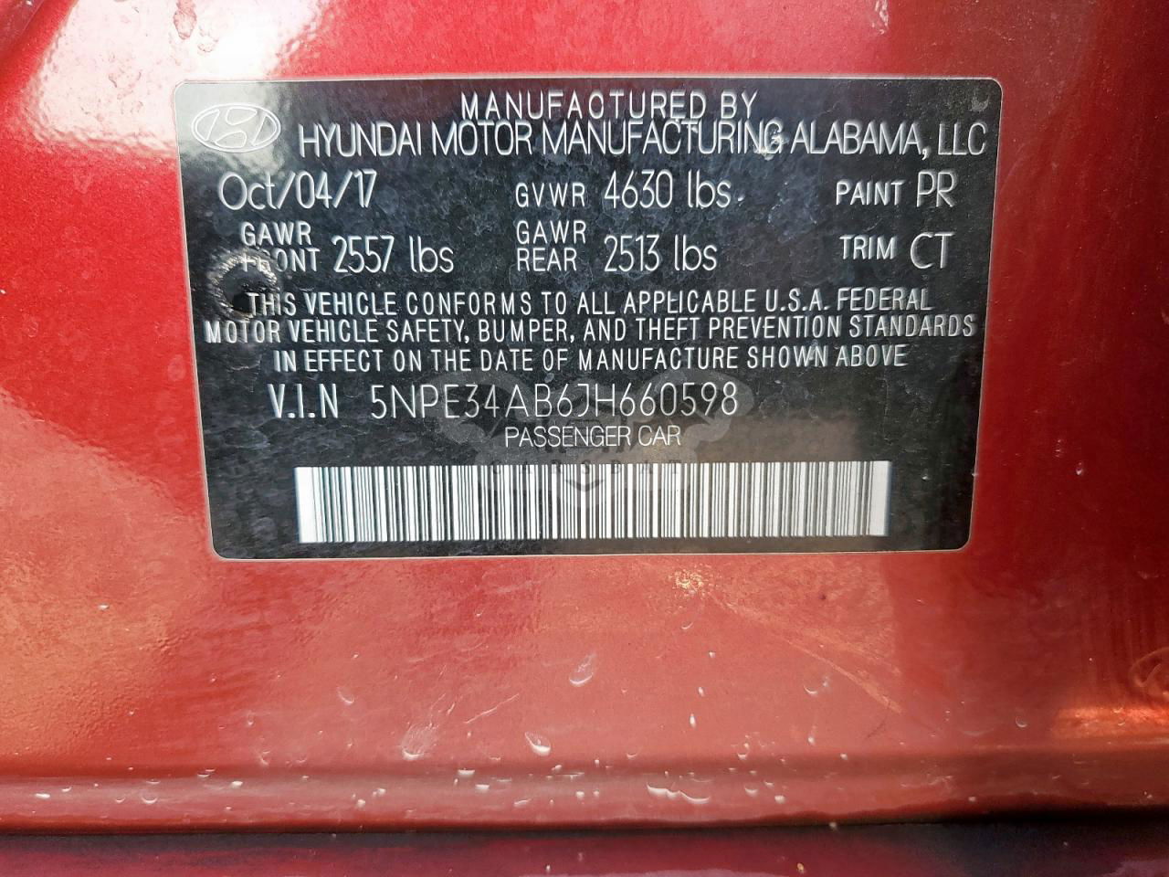 • VIN: 5NPE34AB6JH660598