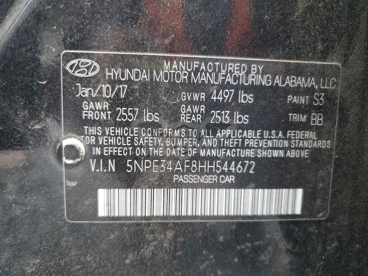 • VIN: 5NPE34AF8HH544672