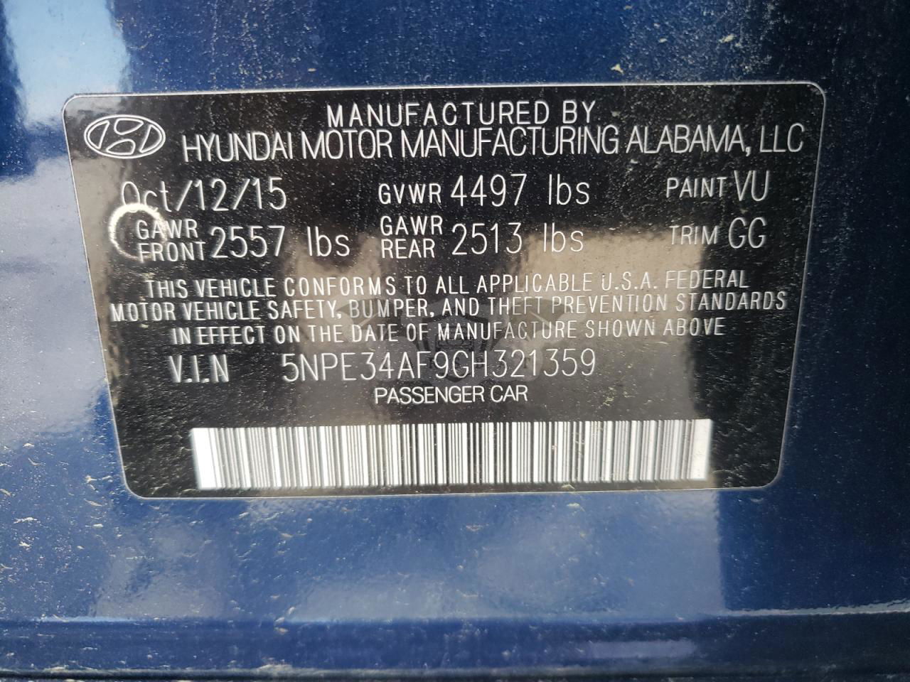 • VIN: 5NPE34AF9GH321359