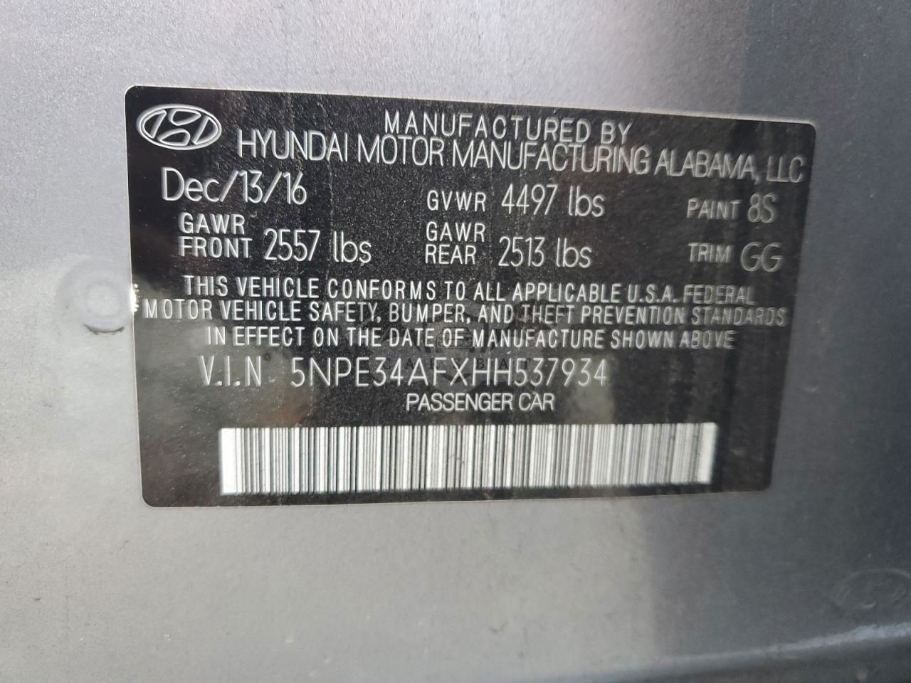 • VIN: 5NPE34AFXHH537934