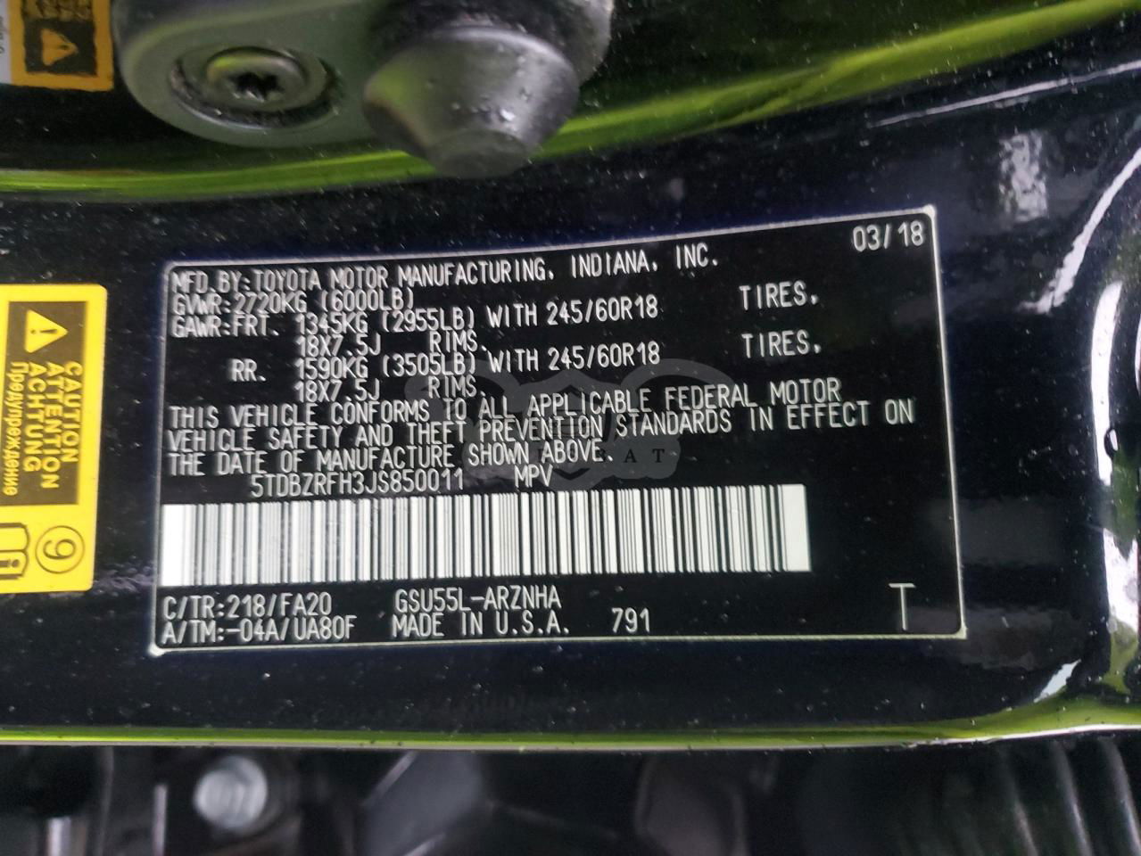 • VIN: 5TDBZRFH3JS850011
