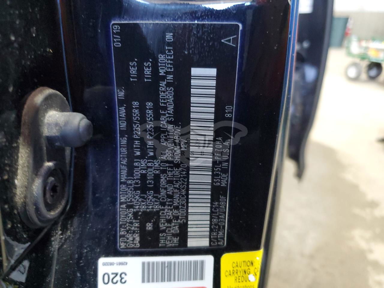 • VIN: 5TDDZ3DC4KS221470