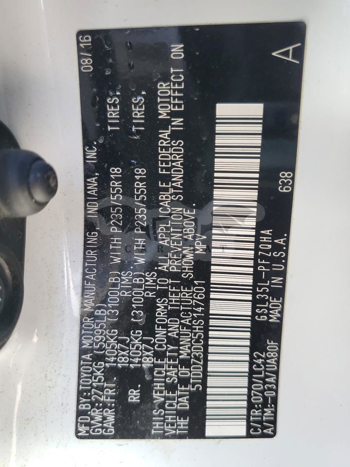 • VIN: 5TDDZ3DC5HS147601