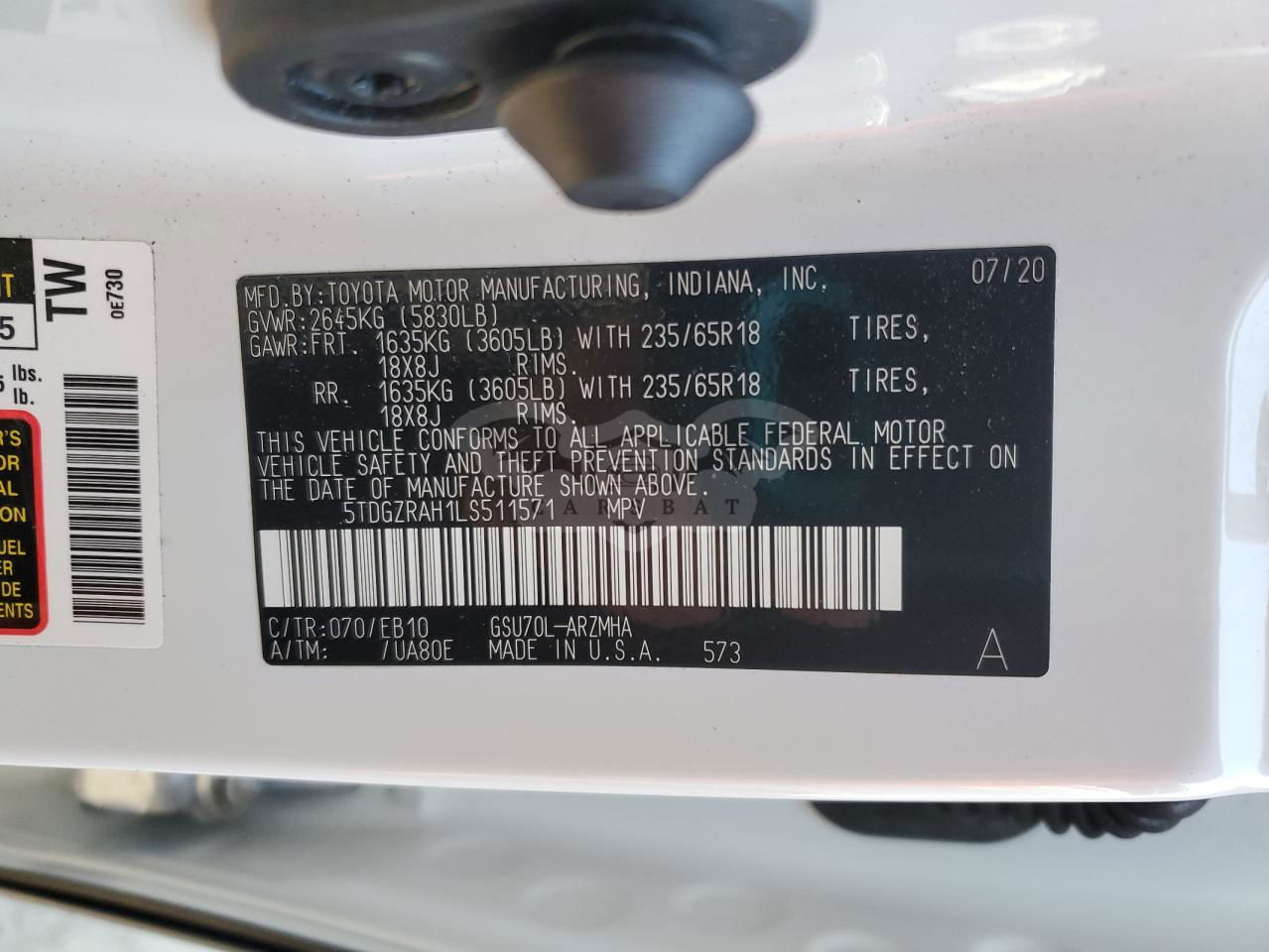 • VIN: 5TDGZRAH1LS511571