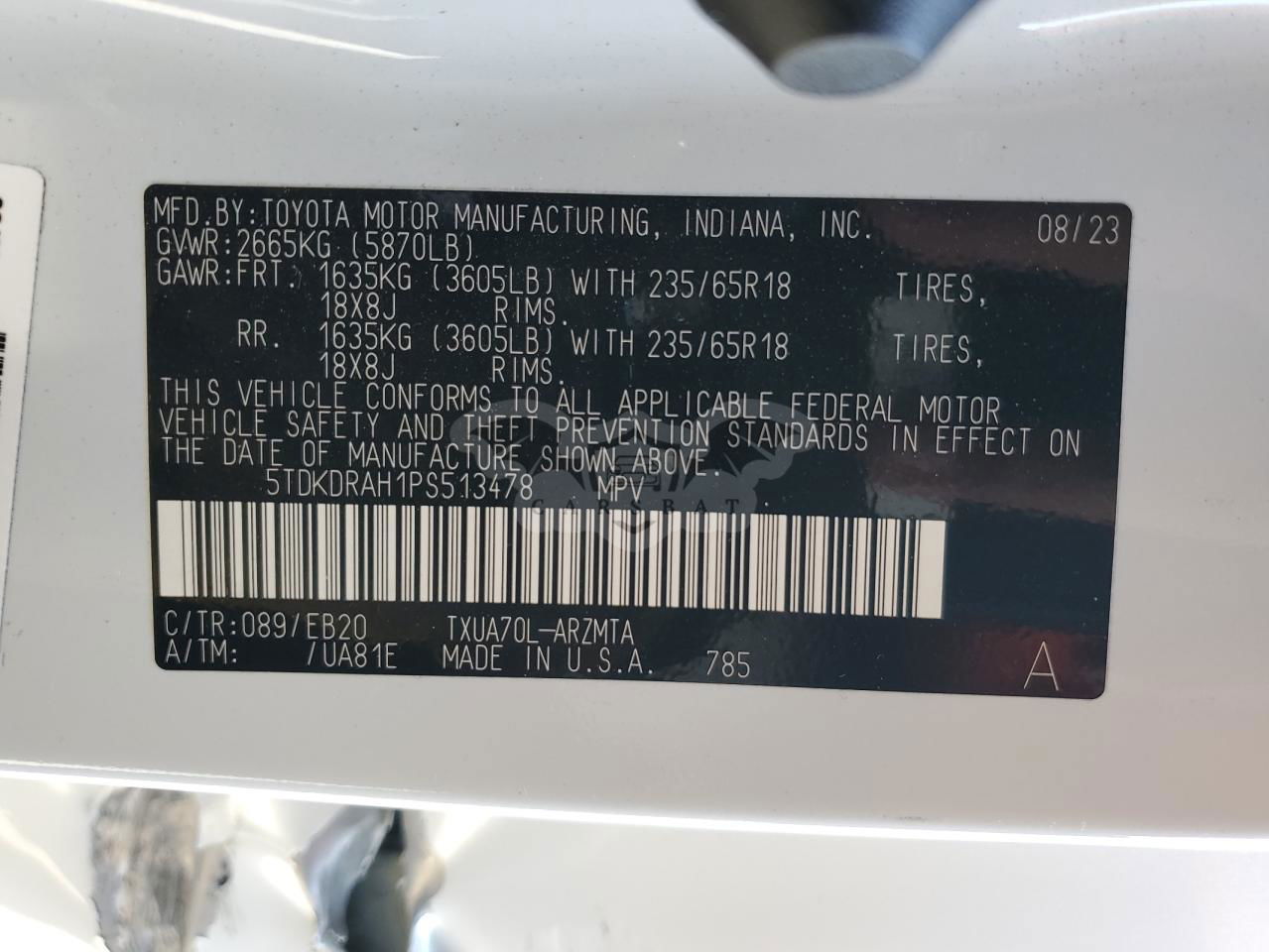 • VIN: 5TDKDRAH1PS513478