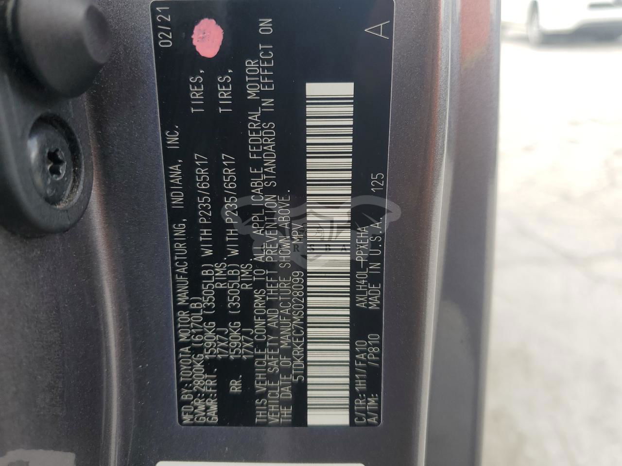 • VIN: 5TDKRKEC7MS028099