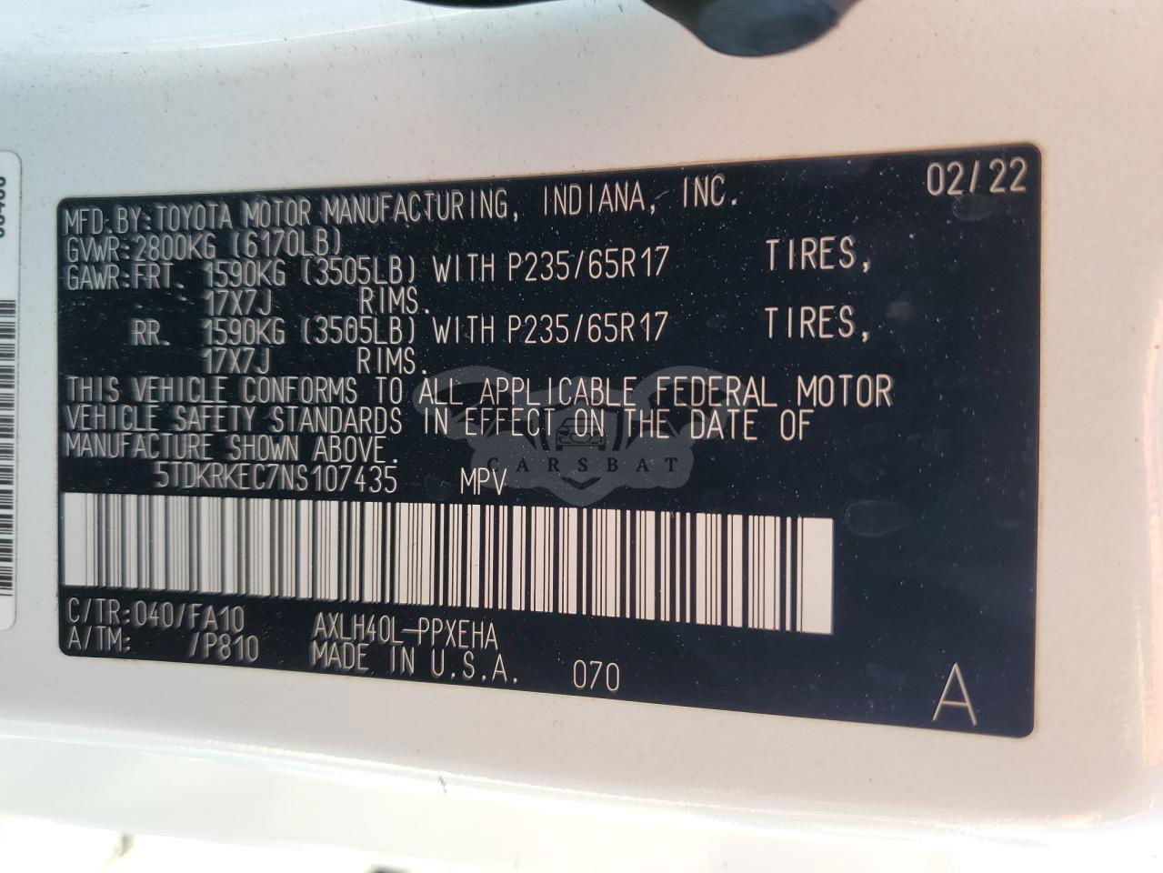 • VIN: 5TDKRKEC7NS107435
