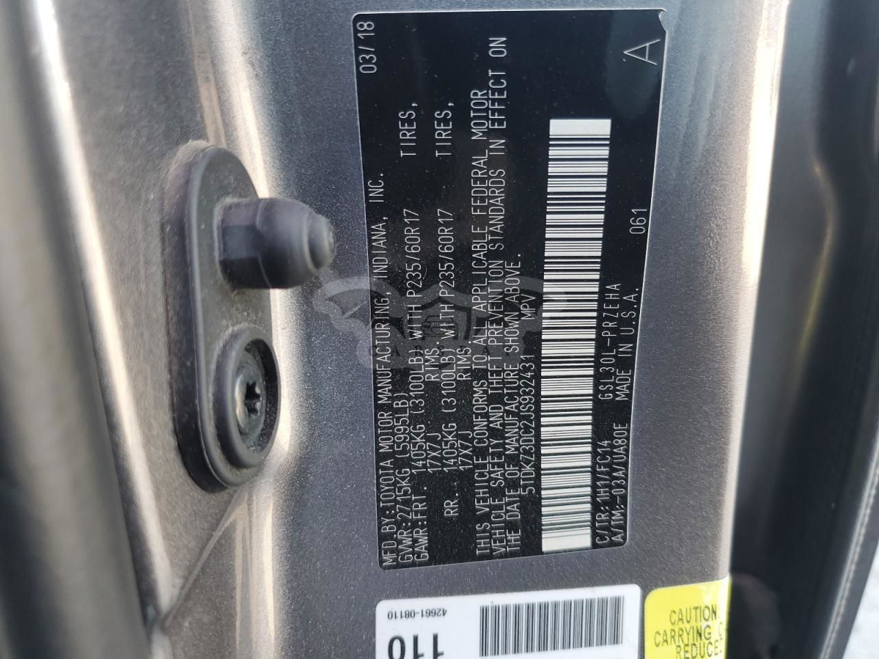 • VIN: 5TDKZ3DC2JS932431