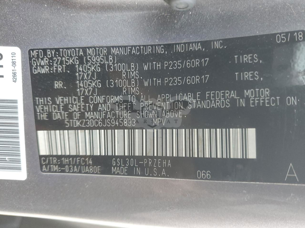 • VIN: 5TDKZ3DC6JS945893