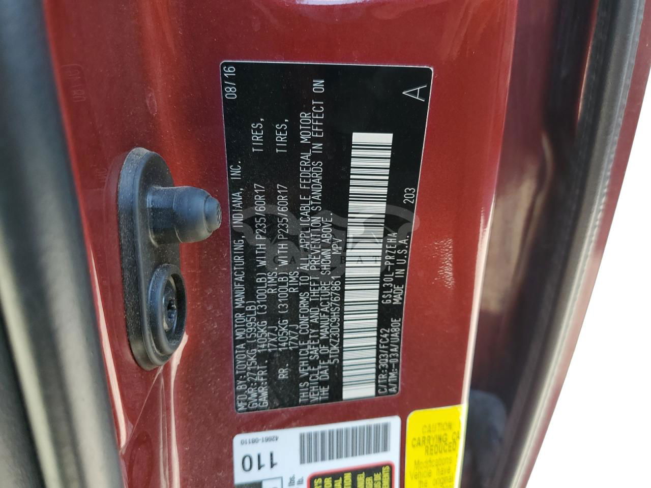 • VIN: 5TDKZ3DC9HS767861
