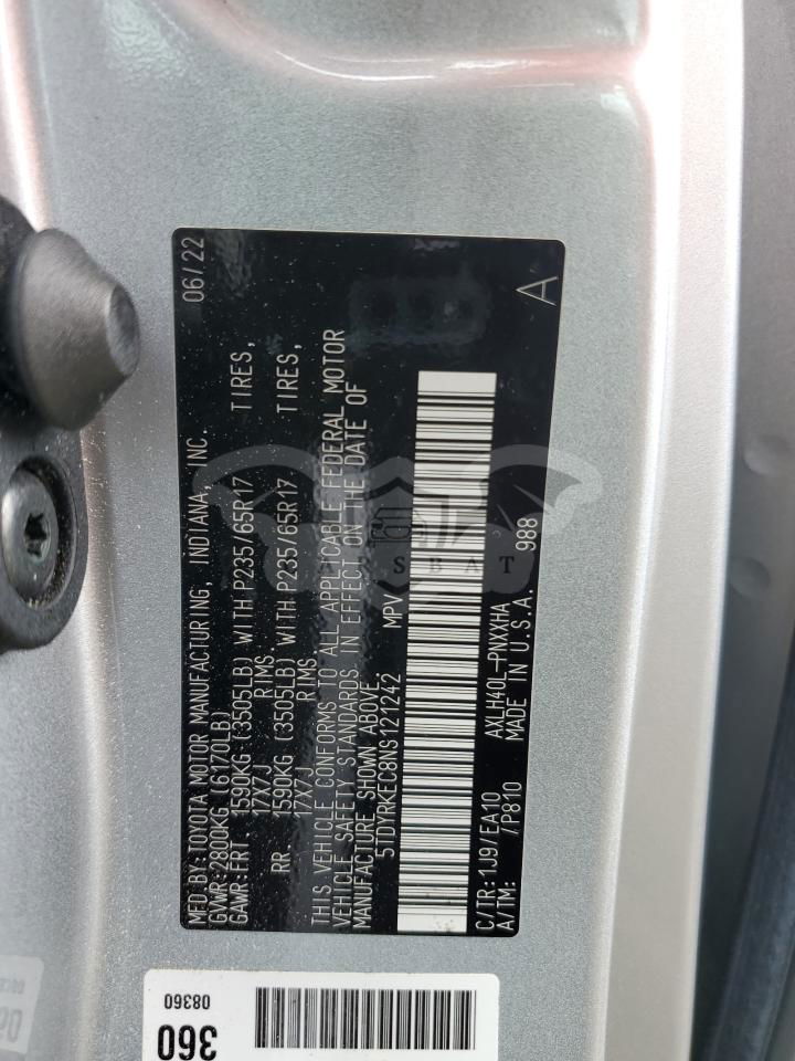 • VIN: 5TDYRKEC8NS121242