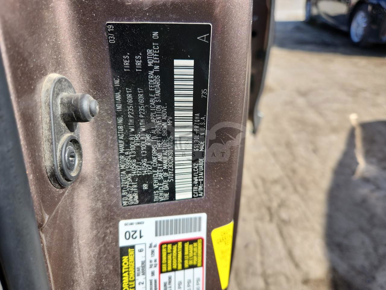 • VIN: 5TDYZ3DC2KS017025