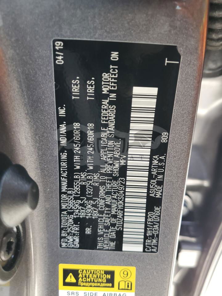 • VIN: 5TDZARFH0KS049723