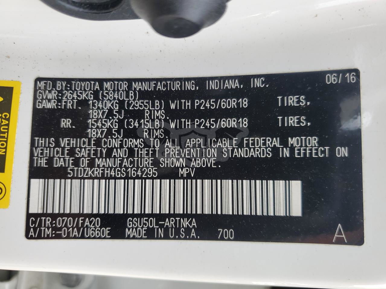• VIN: 5TDZKRFH4GS164295