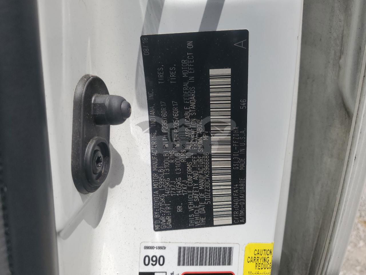 • VIN: 5TDZZ3DC7KS966686