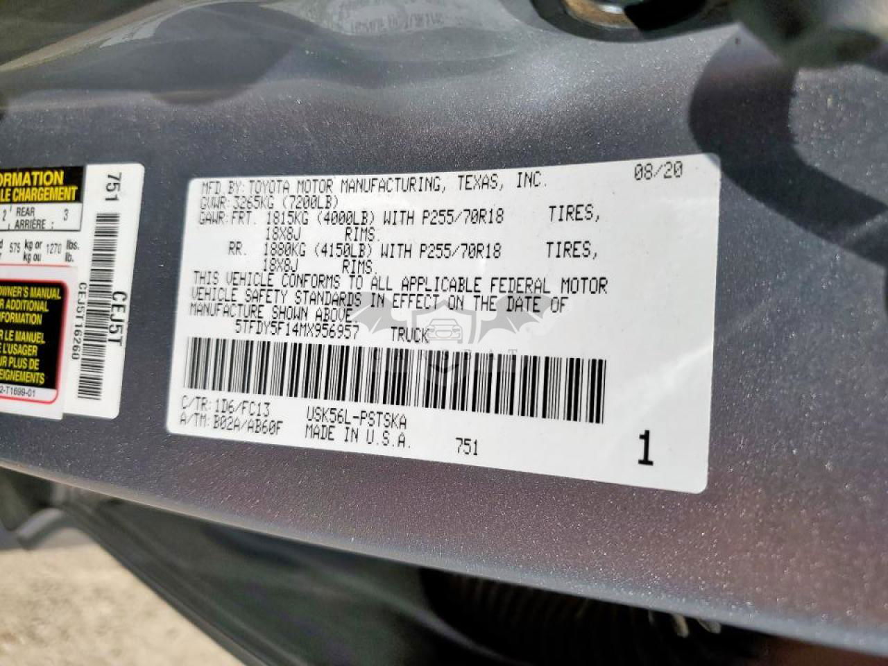 • VIN: 5TFDY5F14MX956957