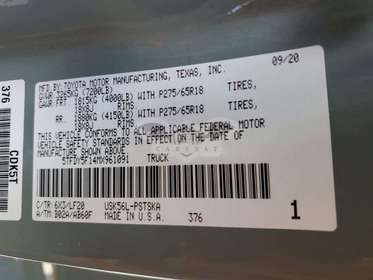 • VIN: 5TFDY5F14MX961091