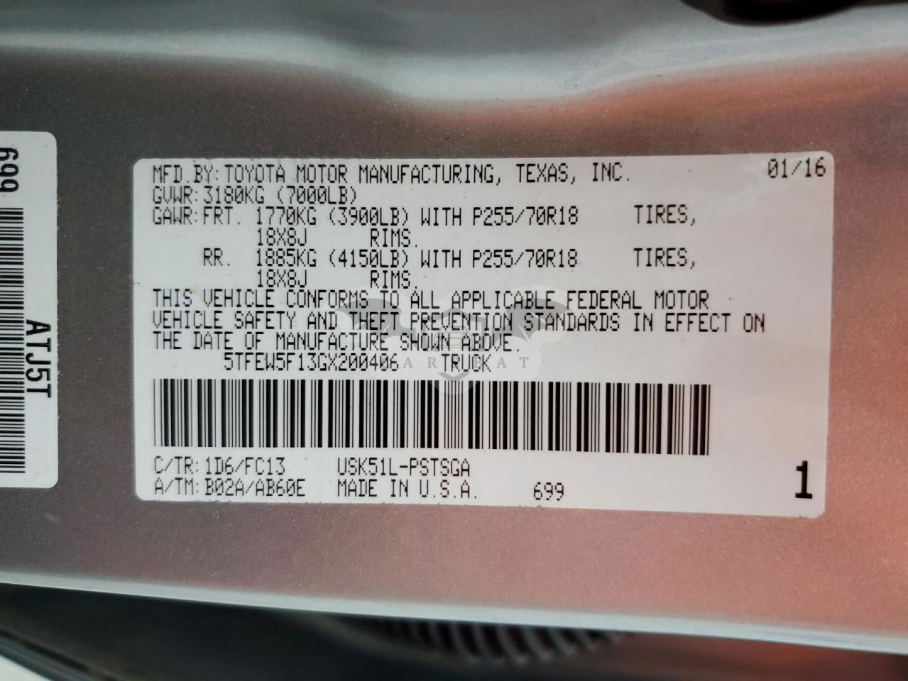 • VIN: 5TFEW5F13GX200406