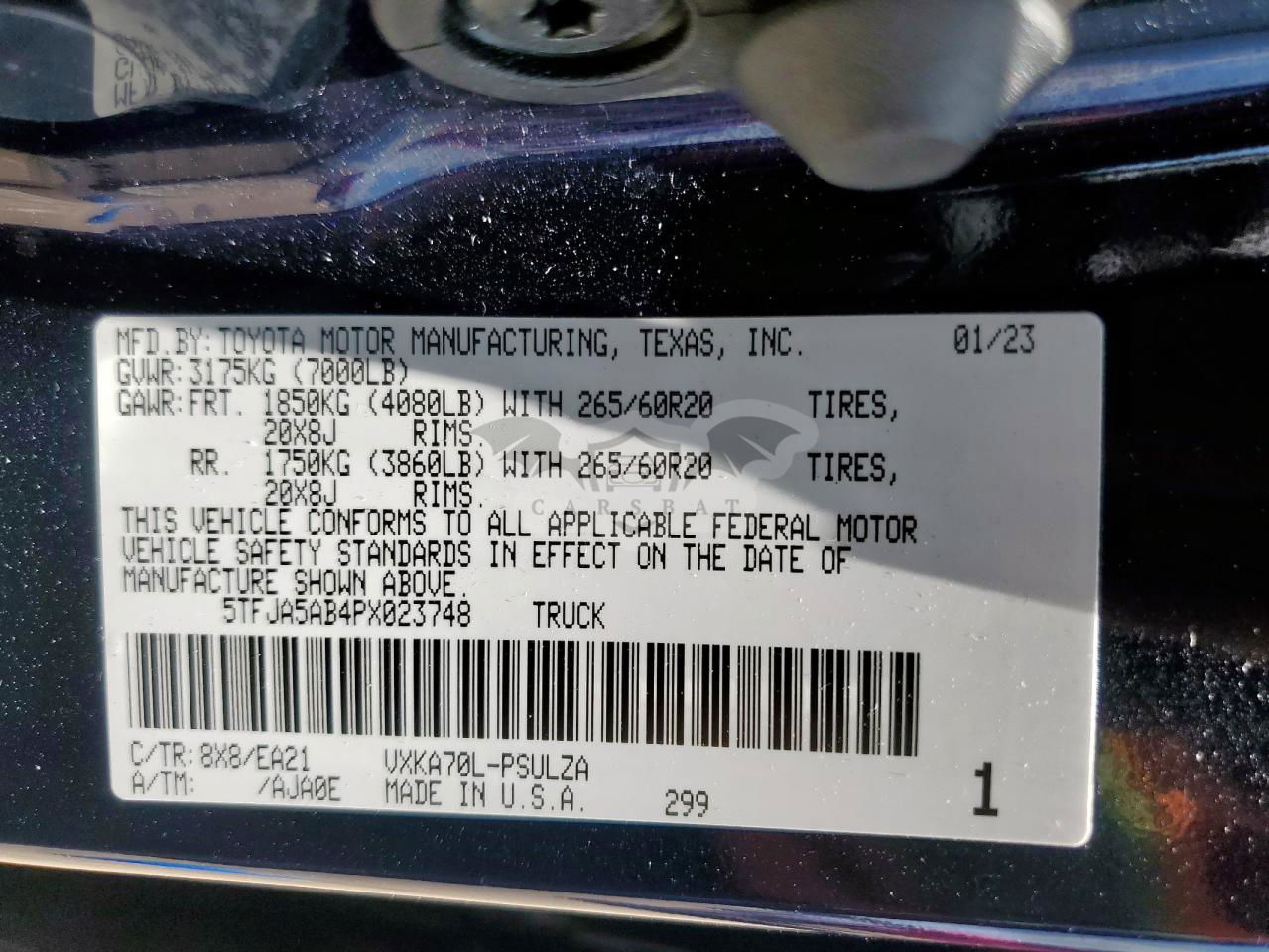 • VIN: 5TFJA5AB4PX023748
