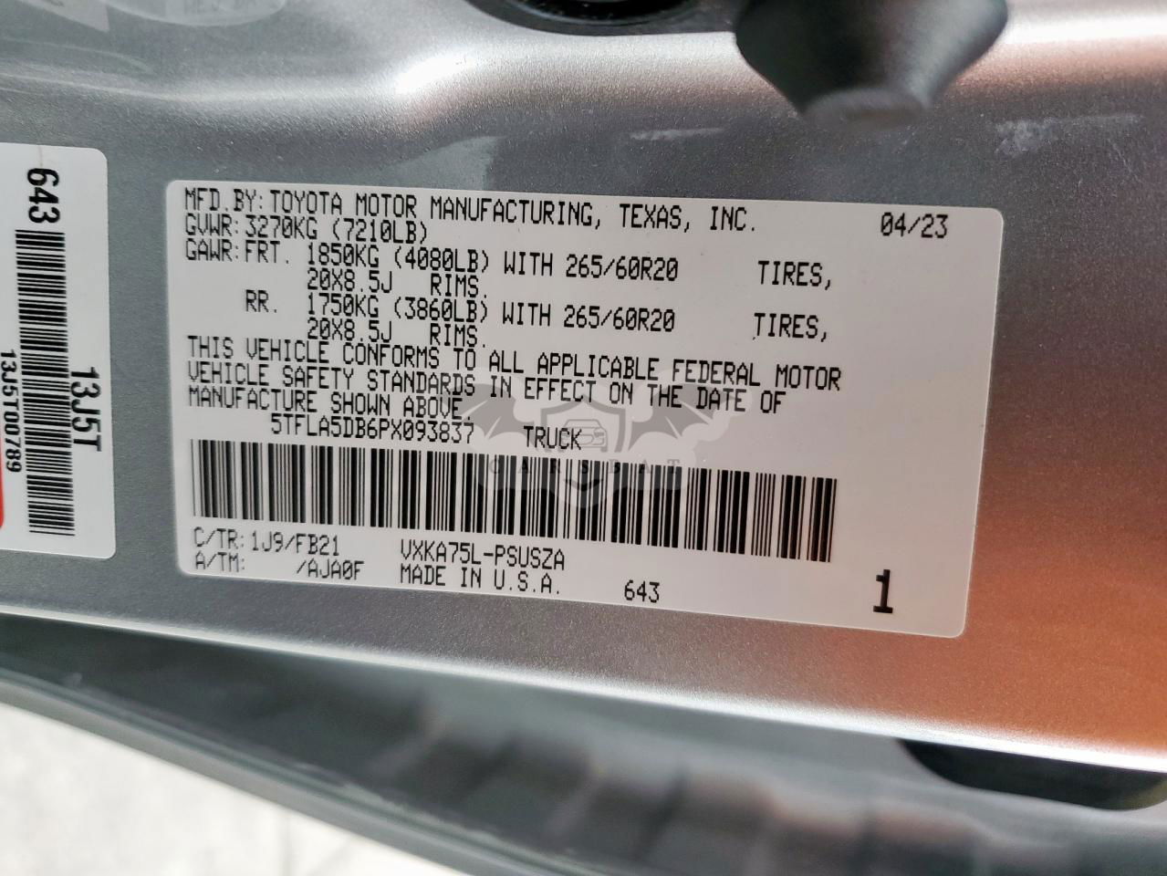 • VIN: 5TFLA5DB6PX093837