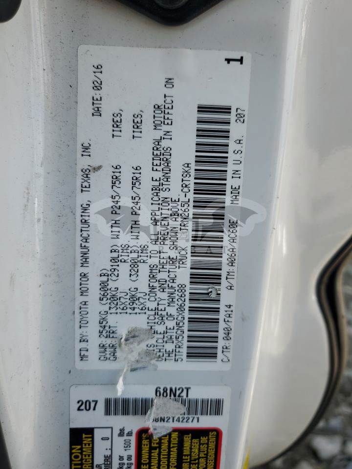 • VIN: 5TFRX5GN5GX062688