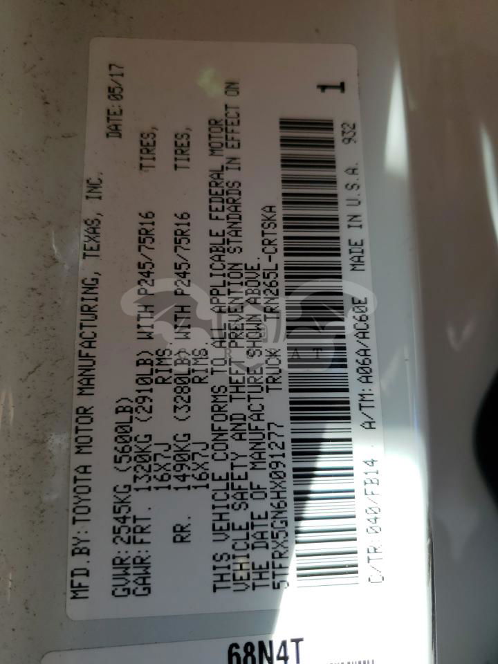 • VIN: 5TFRX5GN6HX091277