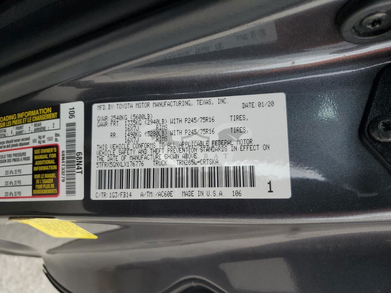 • VIN: 5TFRX5GNXLX176776