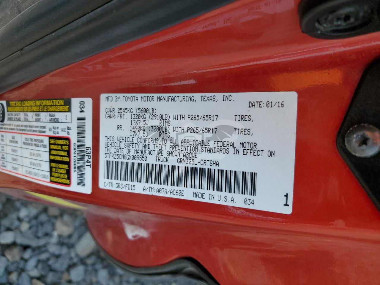 • VIN: 5TFRZ5CN8GX009550