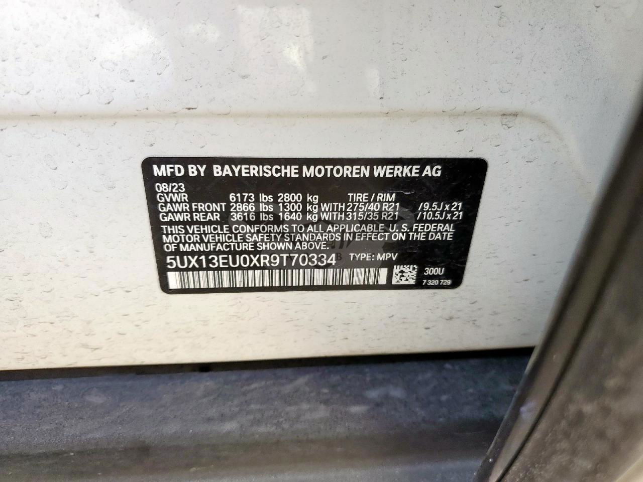 • VIN: 5UX13EU0XR9T70334