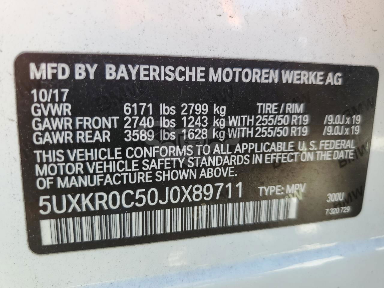 • VIN: 5UXKR0C50J0X89711