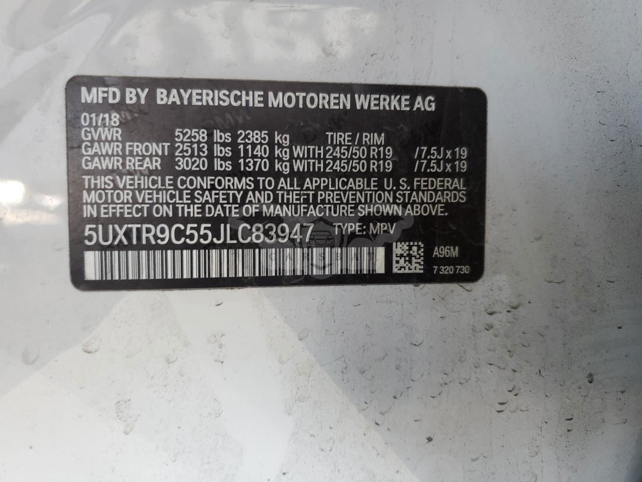 • VIN: 5UXTR9C55JLC83947