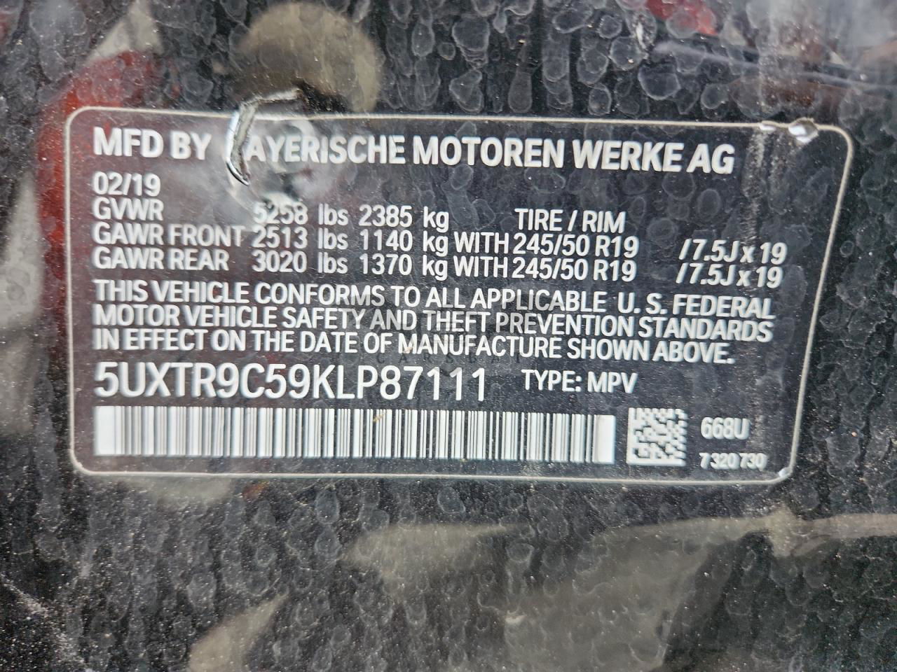 • VIN: 5UXTR9C59KLP87111