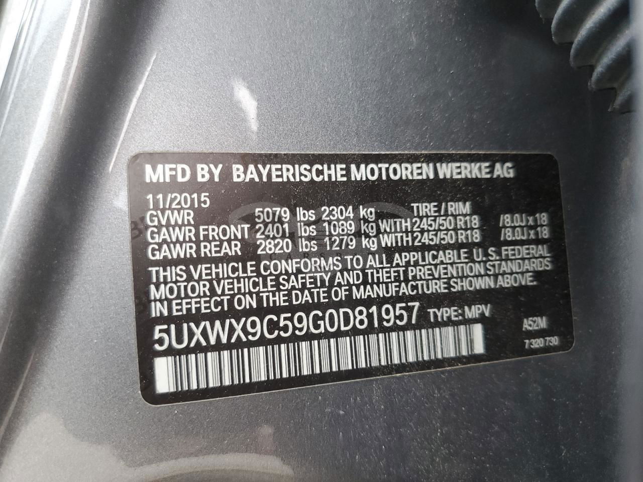 • VIN: 5UXWX9C59G0D81957