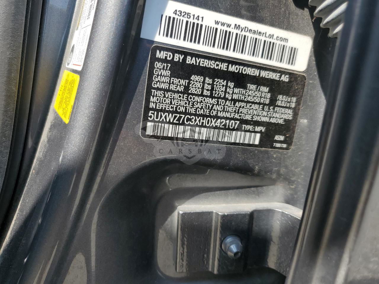 • VIN: 5UXWZ7C3XH0X42107
