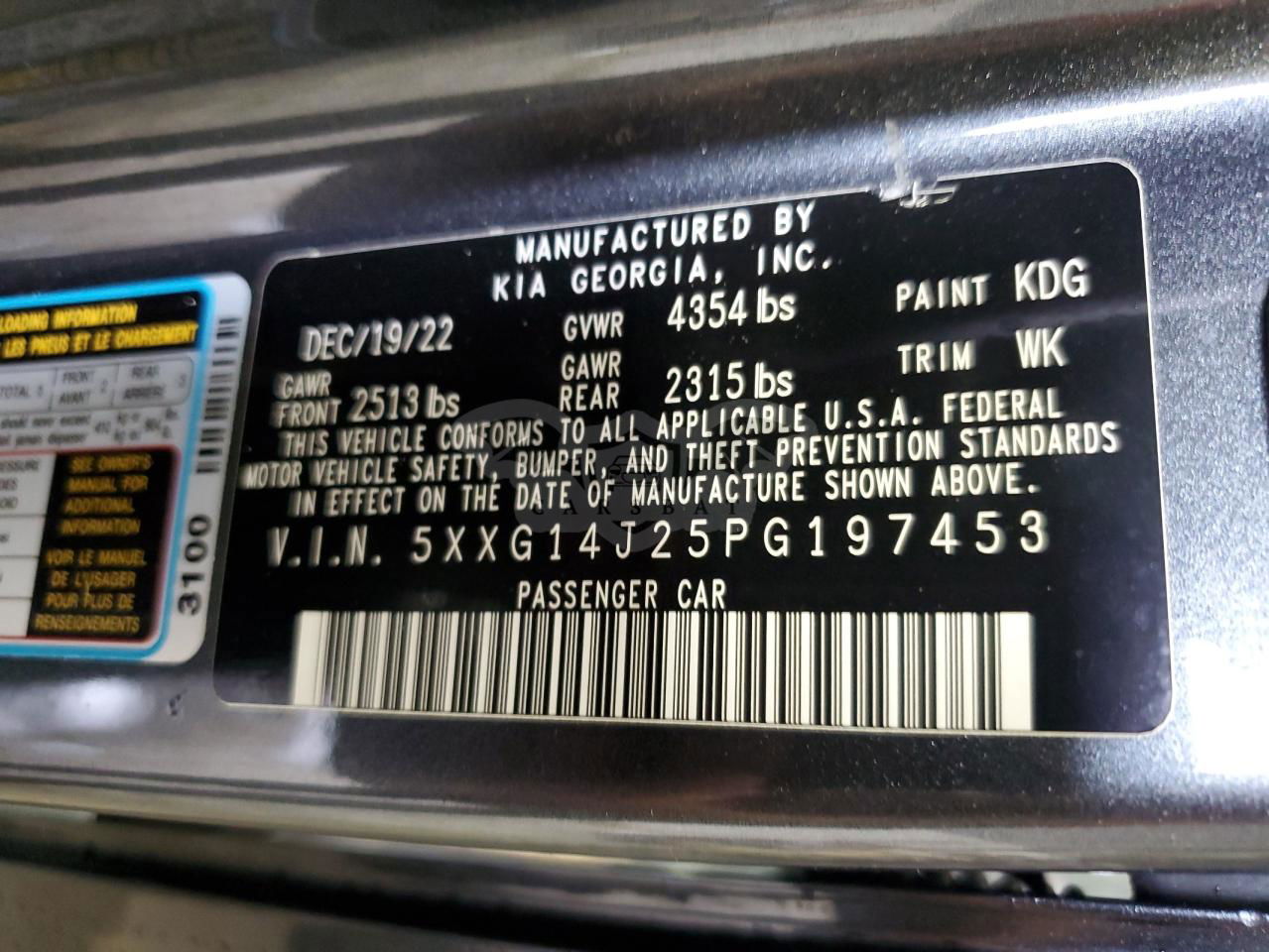 • VIN: 5XXG14J25PG197453